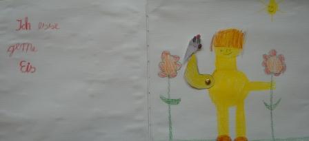 Bei diesem Projekt kann jedes Kind sein eigenes und einmaliges Bilderbuch entwerfen und gestalten. Es werden bekannte oder selbst ausgedachte Geschichten oder Gedichte verwendet. Die Papierbögen werden zu einem Buch zusammengenäht. Die Bilder werden einzeln gemalt und in das angefertigte Buch eingeklebt. Bei den Bildern muss vorher gründlich überlegt werden, wie sich die Figuren oder Gegenstände später bewegen sollen. Alles was sich bewegen soll, muss separat gemalt und dann ausgeschnitten werden.